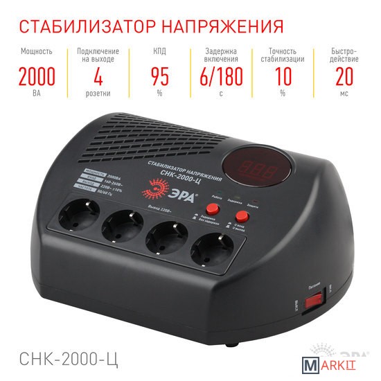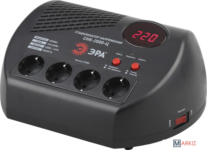 Markit » Стабилизаторы, сетевые фильтры, удлинители » Стабилизатор напряжения ЭРА СНК-2000-Ц Б0031075